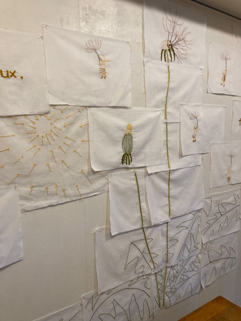 「散歩をしていて、なんかいいなと思ったものを写真に撮ってそれを刺繍にするとか、昔から日常の景色が多いですね。言葉では説明できないけれど『なんかこれいいな』を刺繍で表現しています。道端に生えている『この草いいな』をどう説明したら良いのかわからなくてうまく説明できない。そんな時は、自分なりに刺繍で表現できたらスッキリします。」