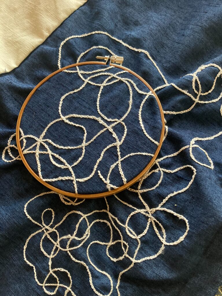 「いろんなタイプの刺繍作家の方がいらっしゃって、自分はどうしたいのだろうと思っていたんです。そんなにまめな性格じゃないので、図案を起こして設計図までちゃんと作るようなものはできません。なるべく下描きをしないで、行き当たりばったりでやるのが好きなんです。同じものは二度とできないし、再現性がないから人にも説明できないんですけど、そういうのをやりたいなと思っています。」